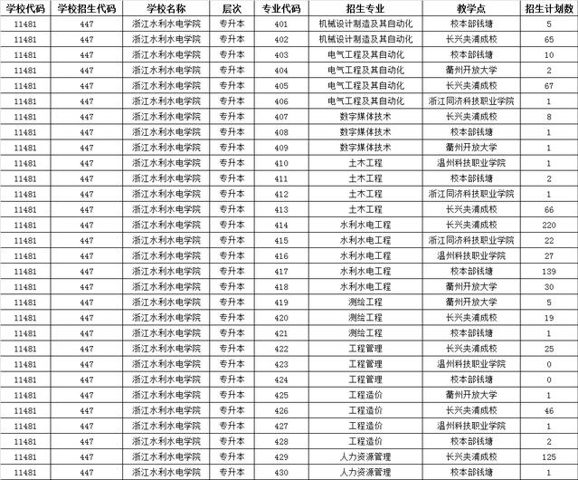 浙江水利水电学院2025年成人高等学历教育招生计划